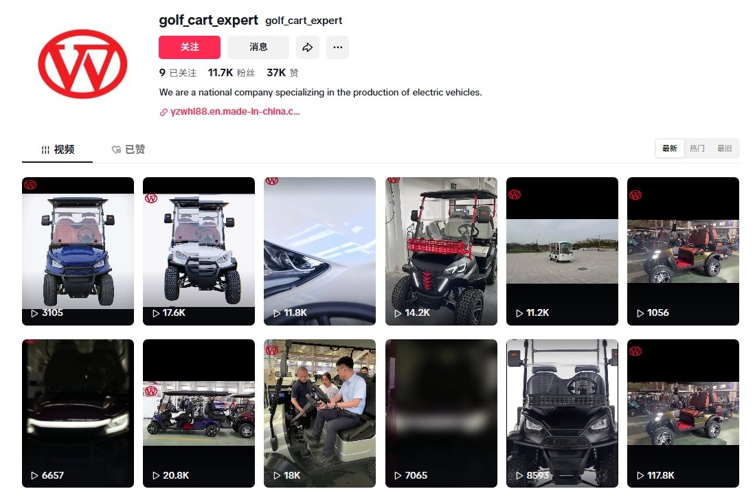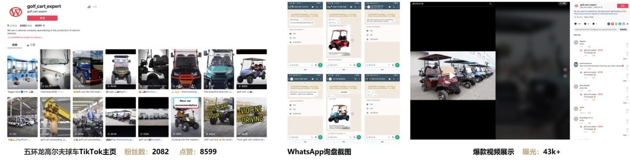 解决方案:通过在TikTok上开设高尔夫球车企业账号,吸引垂直流量,从而获取询盘。